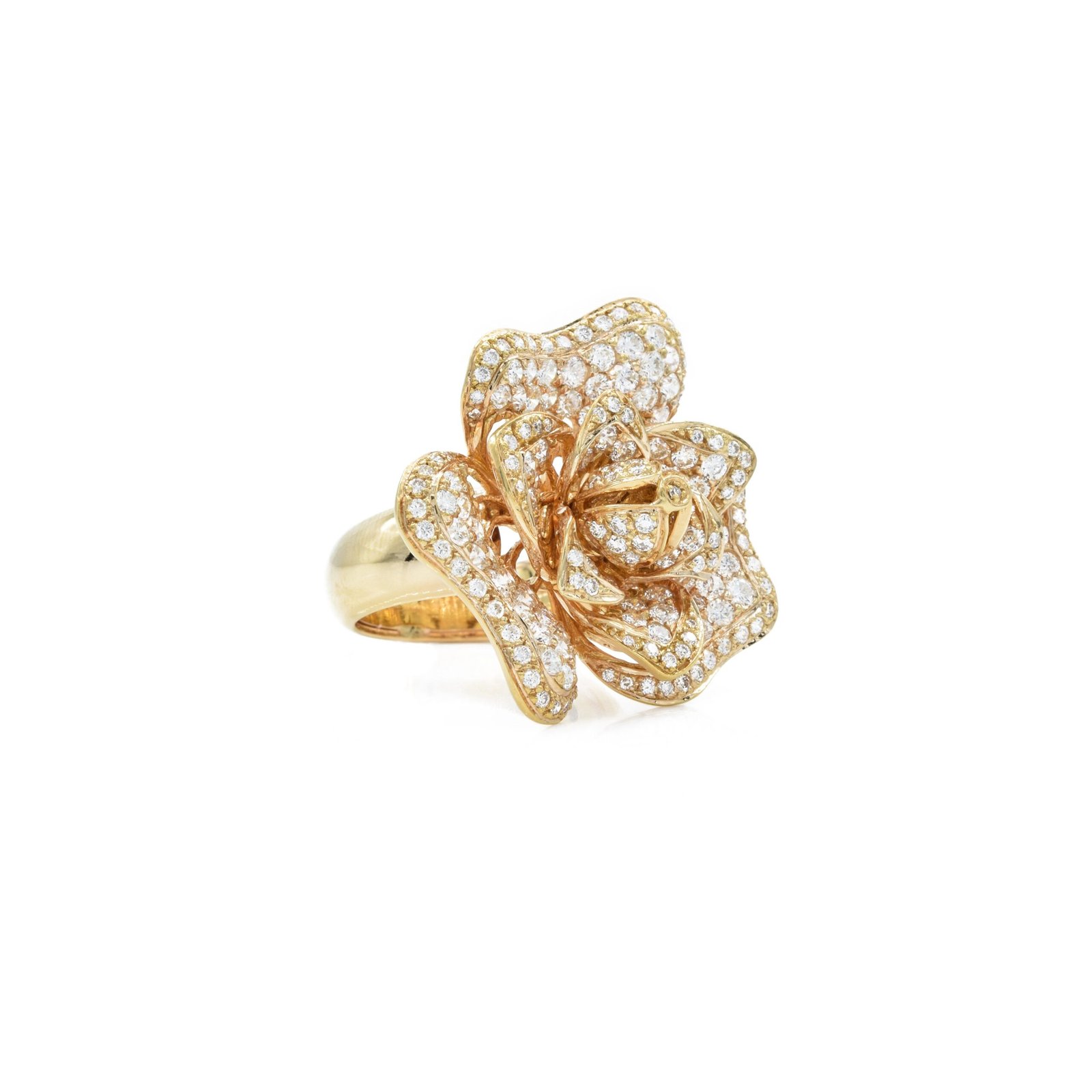 Densely set to provide brilliant brightness and make eyes stand out, the diamonds here catch light in the same ways and do so so impressively. This is ideal for a diamond ring of flower-like elegance; someone who values complicated detail may well appreciate the fact that it will be unique.