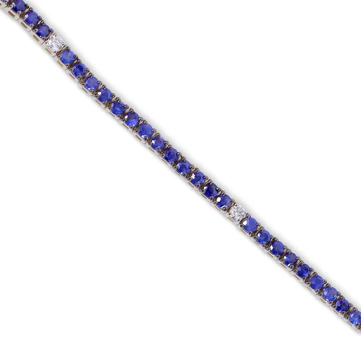 - Design: Half Tennis Bracelet with Sapphires and Diamonds, Half Paperclip Chain