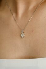 The heart-shaped diamond pendant in white gold is stunning. It’s a timeless piece perfect for any occasion.
