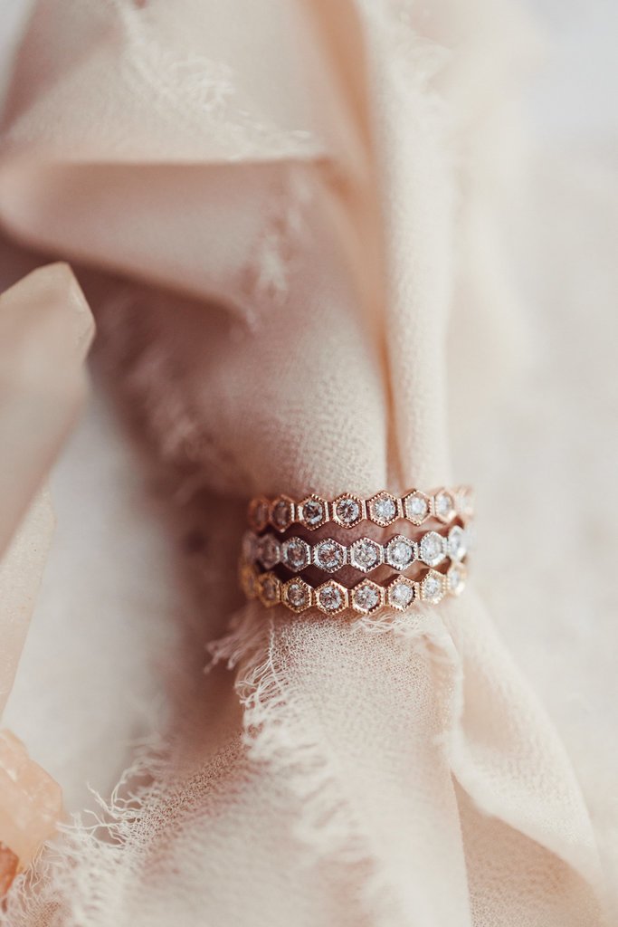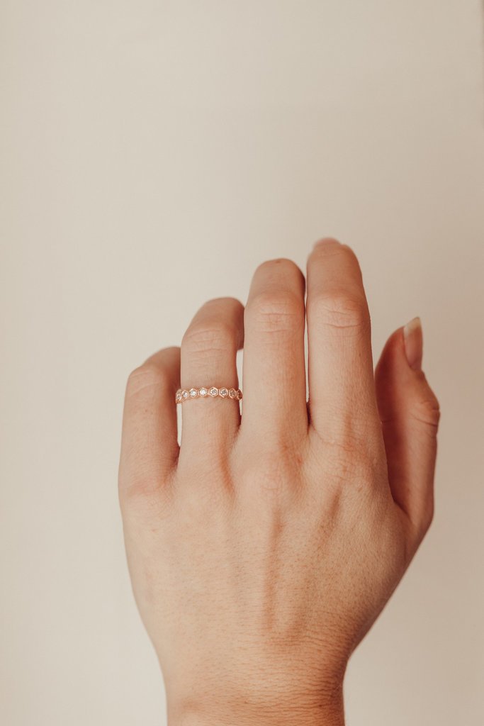- Design: Hexagon Pattern with Milgrain Detailing