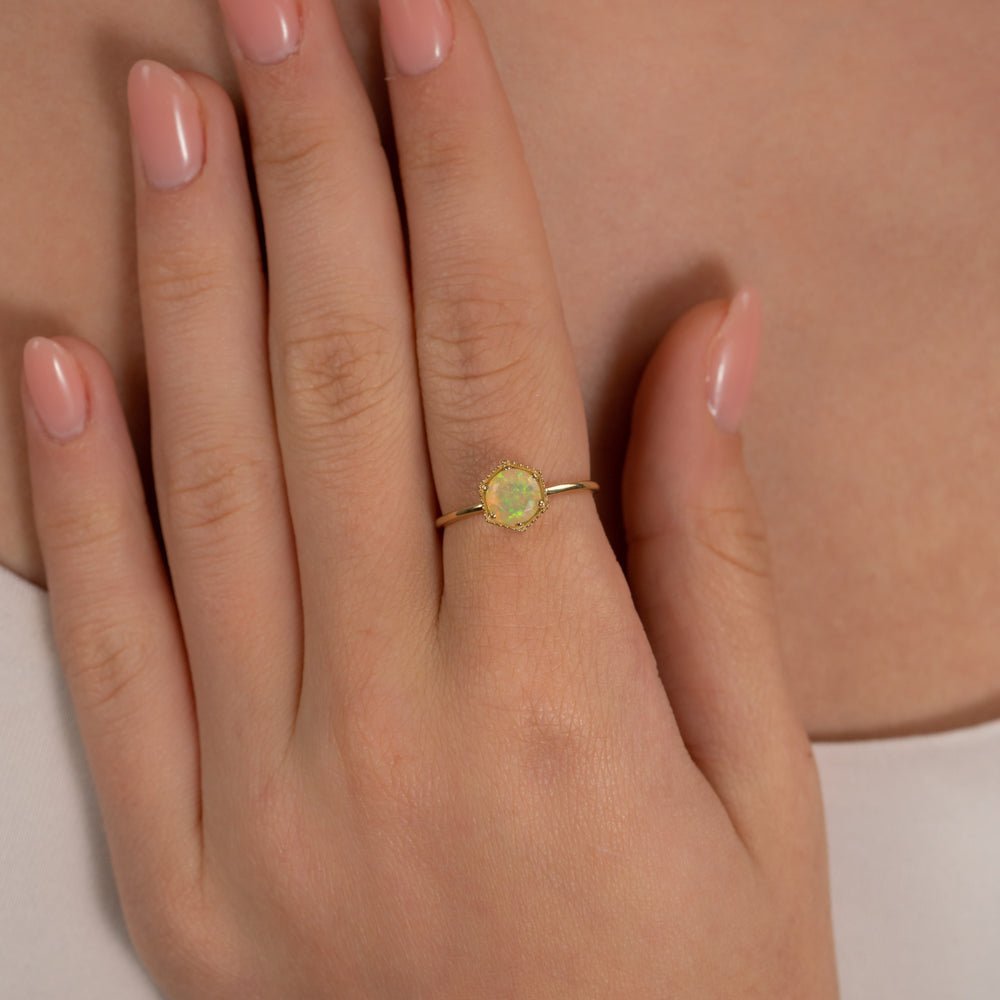 This opal ring is perfect for stacking with other rings. It’s versatile and beautiful.