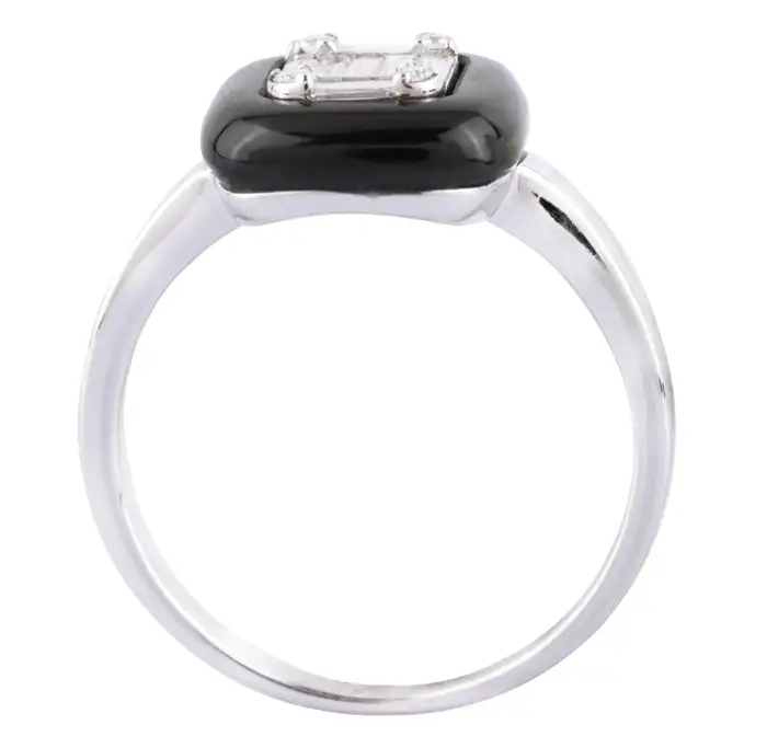 This 14K solid gold cocktail ring pairs moissanite diamonds with a striking black onyx centerpiece—perfect for bold elegance and refined evening glamour.