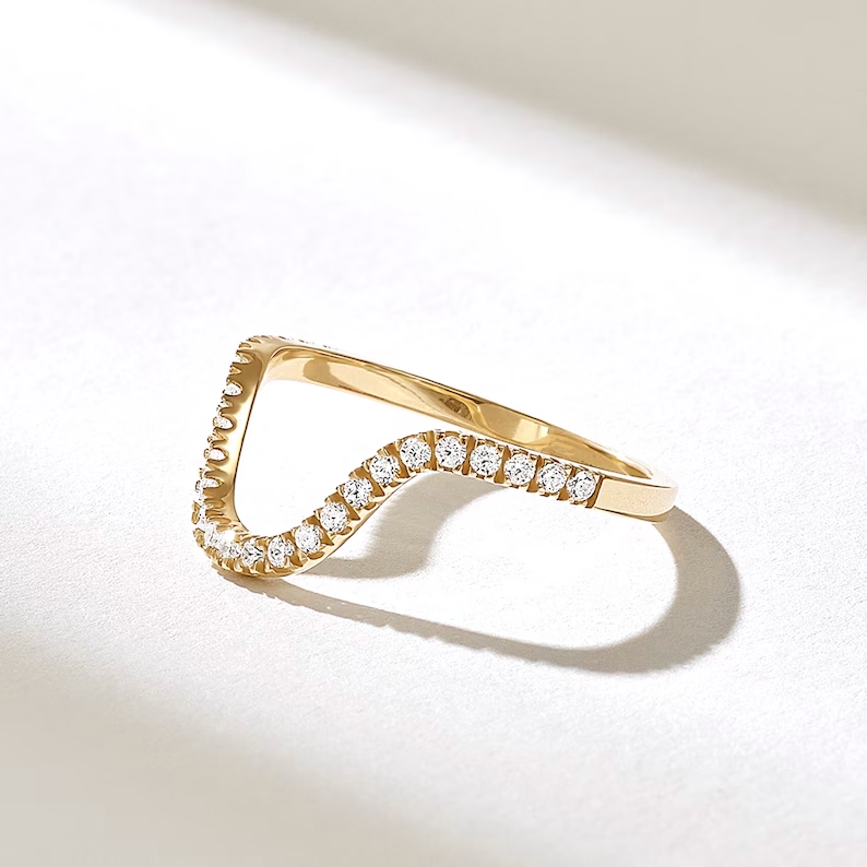 - Product Name: Natural Diamond Curved Band | 14k Contour Ring Enhancer | Solid Gold Pave Arch Ring