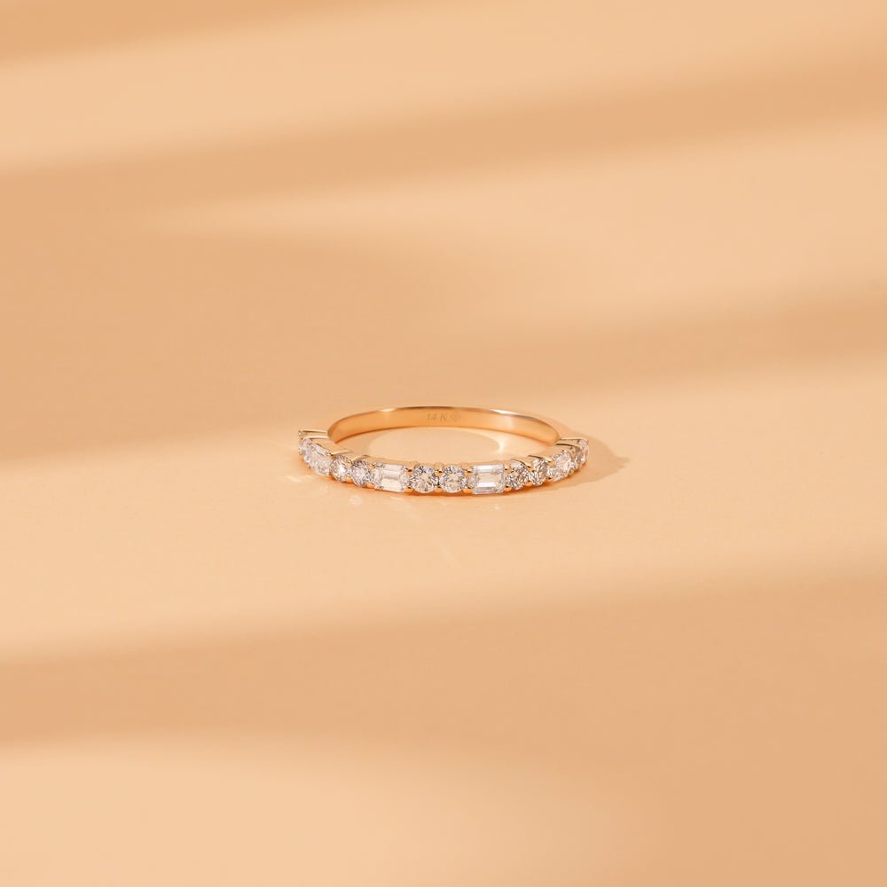 Celebrate timeless elegance with our 14K Solid Gold Half Eternity Ring, a refined classic that embodies everlasting love and sophisticated beauty. This radiant band is adorned with natural diamonds totaling 0.70 carats, offering exceptional brilliance in every glance. Expertly set across the top half of the ring, the diamonds boast GH color and VS-SI clarity, delivering superior sparkle and a luxurious finish.