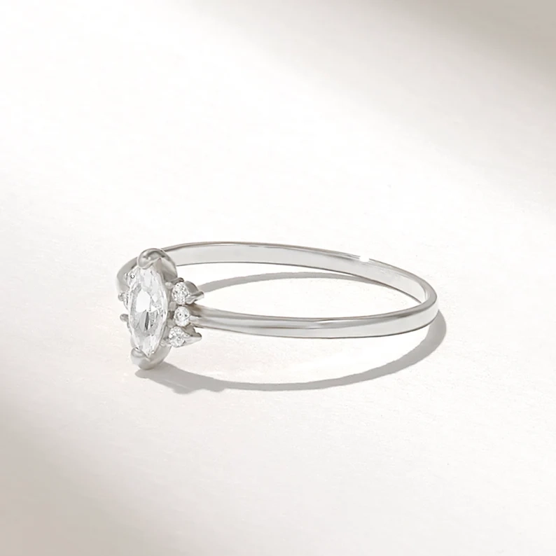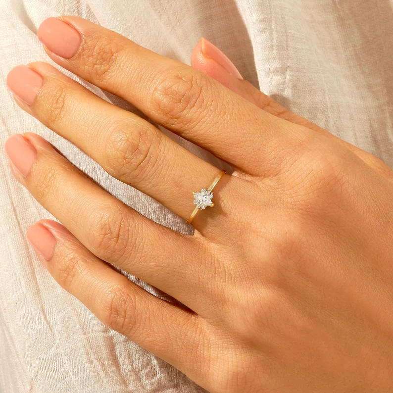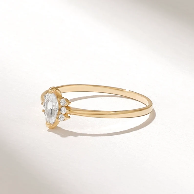 Natural Diamond Marquise Engagement Ring | 18k Gold Tiny Solitaire Ring For Women
