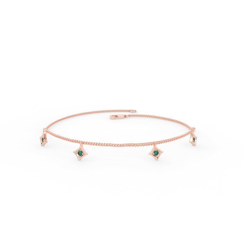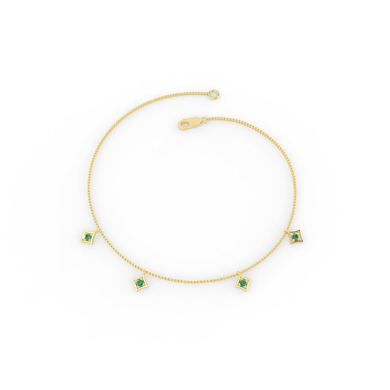 A charming 14K solid gold bracelet featuring natural emerald charms, offering a unique and elegant design perfect for adding a touch of color to any outfit.