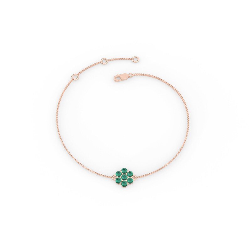14K Solid Gold Natural Emerald Floral Bracelet