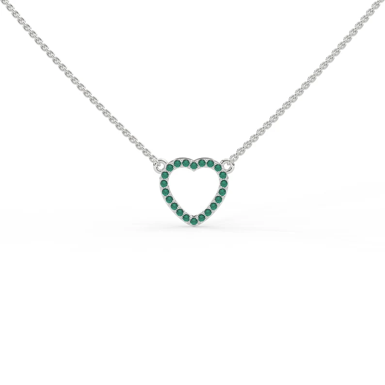 A beautiful 14K solid gold pendant featuring an open heart design with a natural emerald, offering a romantic and elegant touch perfect for any occasion.