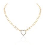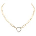 Paperclip Chain Natural Diamond Heart Necklace 18K Gold