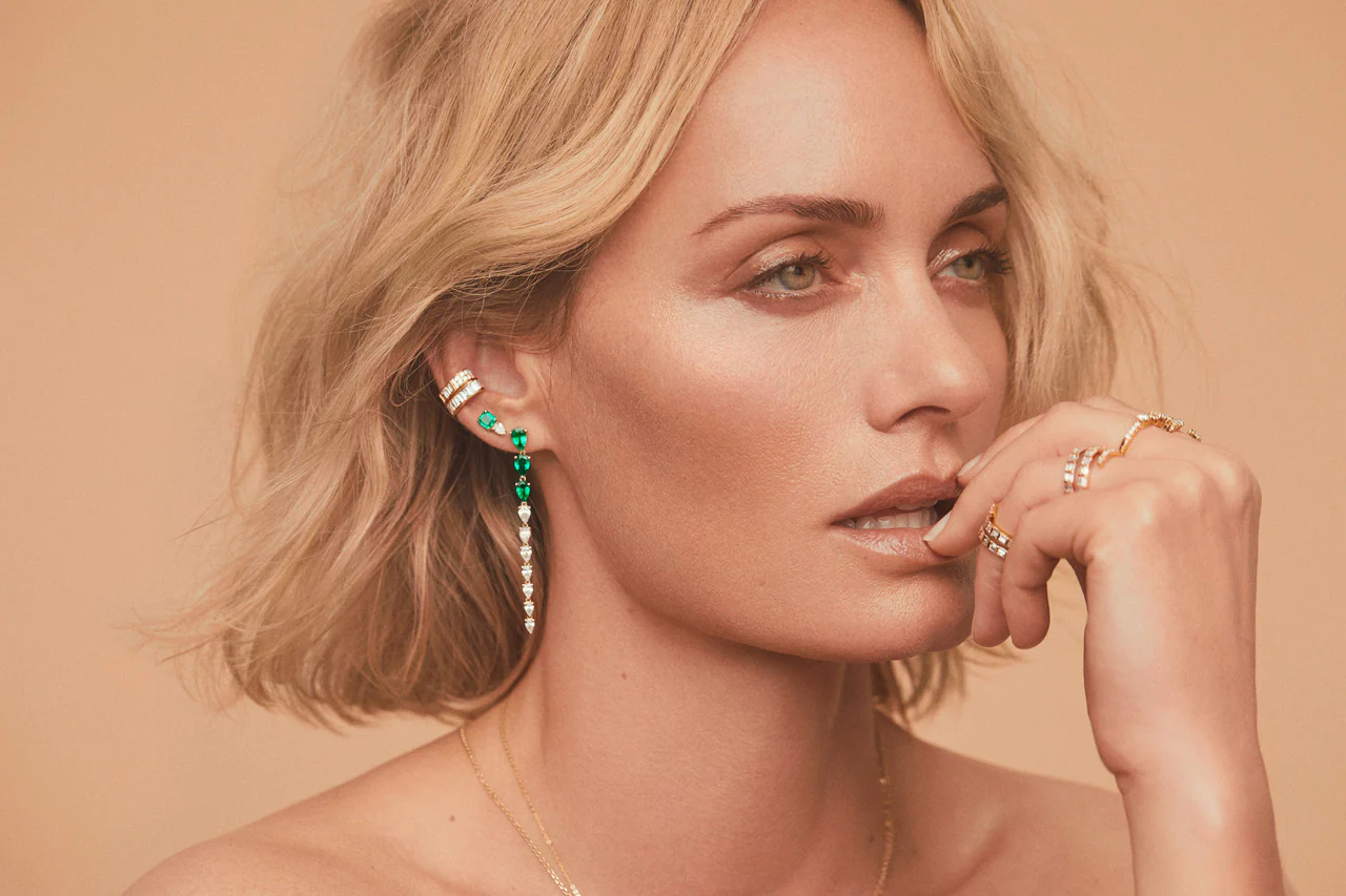 These earrings are made from 14K solid gold and come in white, rose, and yellow gold. You can choose the finish that best suits your style. The contrast of pear-shaped diamonds and Zambian natural emeralds is sure to catch the eye.
