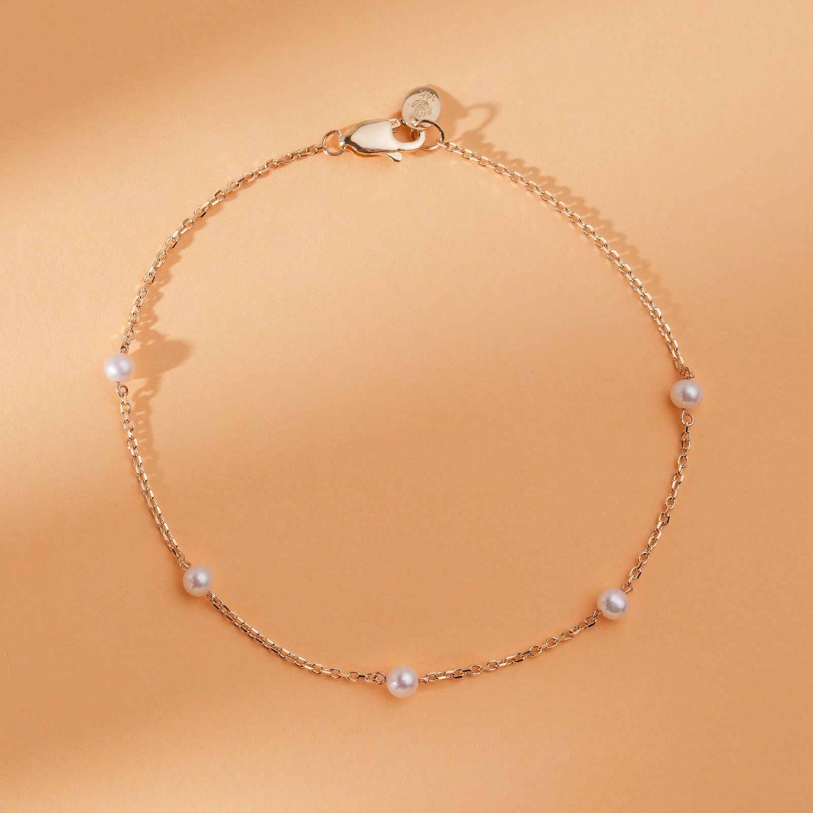 Crafted with care and attention to detail, each pearl is spaced evenly along a dainty chain crafted from 14k solid gold, available in your choice of yellow, rose, or white gold. The station bracelet design creates a look that is both versatile and sophisticated, perfect for elevating any ensemble.