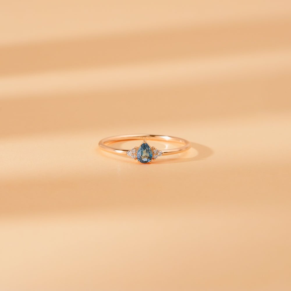 14K Solid Gold Petite London Topaz Natural Diamond Engagement Ring