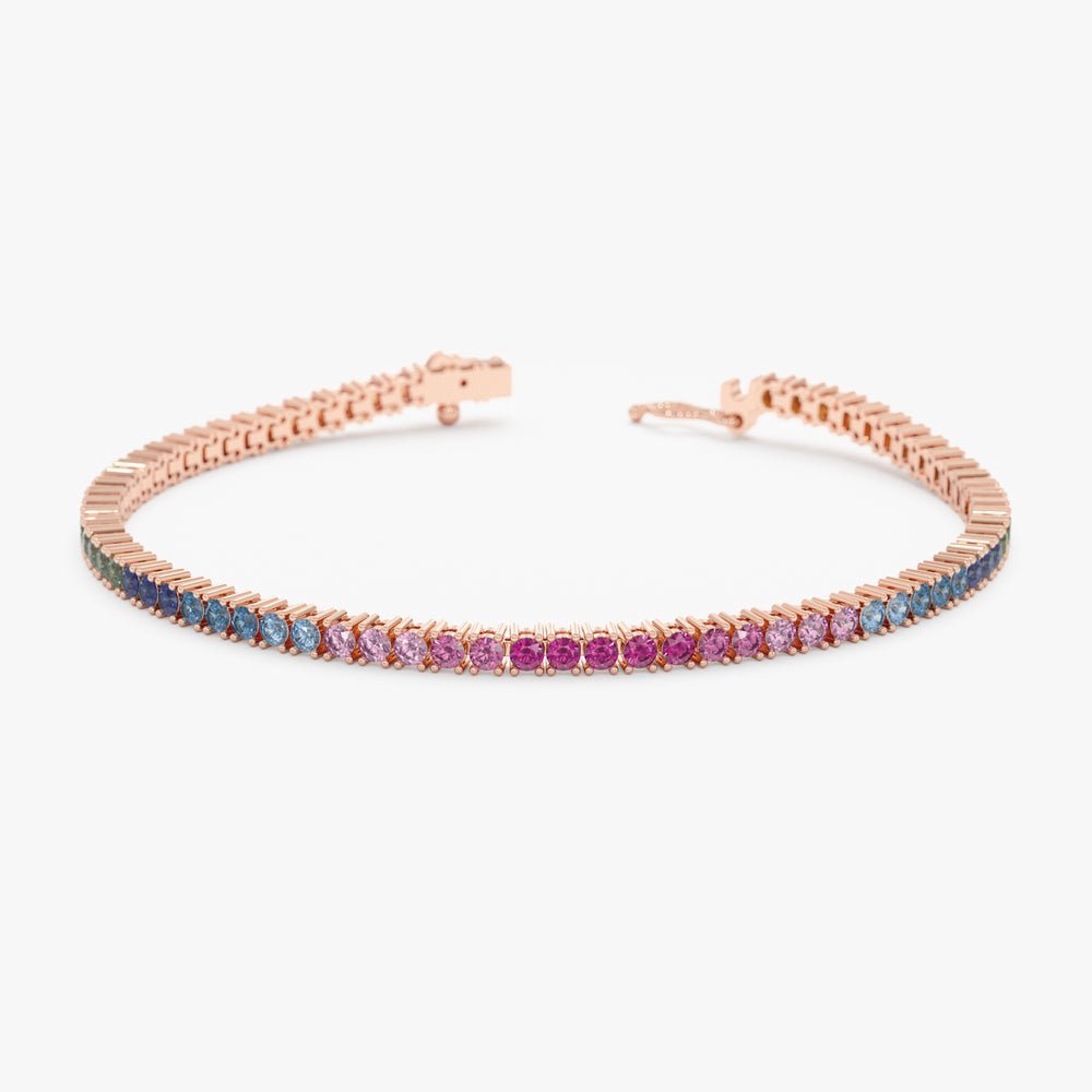 14K Solid Gold Rainbow Sapphire Tennis Bracelet