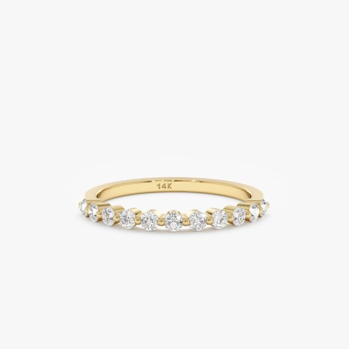 Petite 14K gold diamond ring with 0.21ct GH/VS-SI diamonds. A minimalist band perfect for stacking, gifting, or everyday elegance.