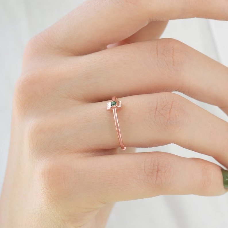 14K Solid Gold Minimalist Emerald Promise Ring