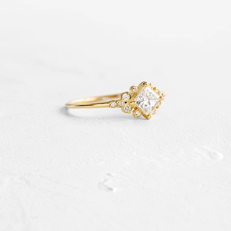 Inspired by the brilliance of the night sky, the Stargaze Ring is a celestial beauty crafted in premium 14K yellow gold. This exquisite piece features a dazzling moissanite diamond that rivals the brilliance of natural diamonds. With its D color and VVS1 clarity, the gemstone radiates unmatched fire and clarity, creating a mesmerizing sparkle with every movement.