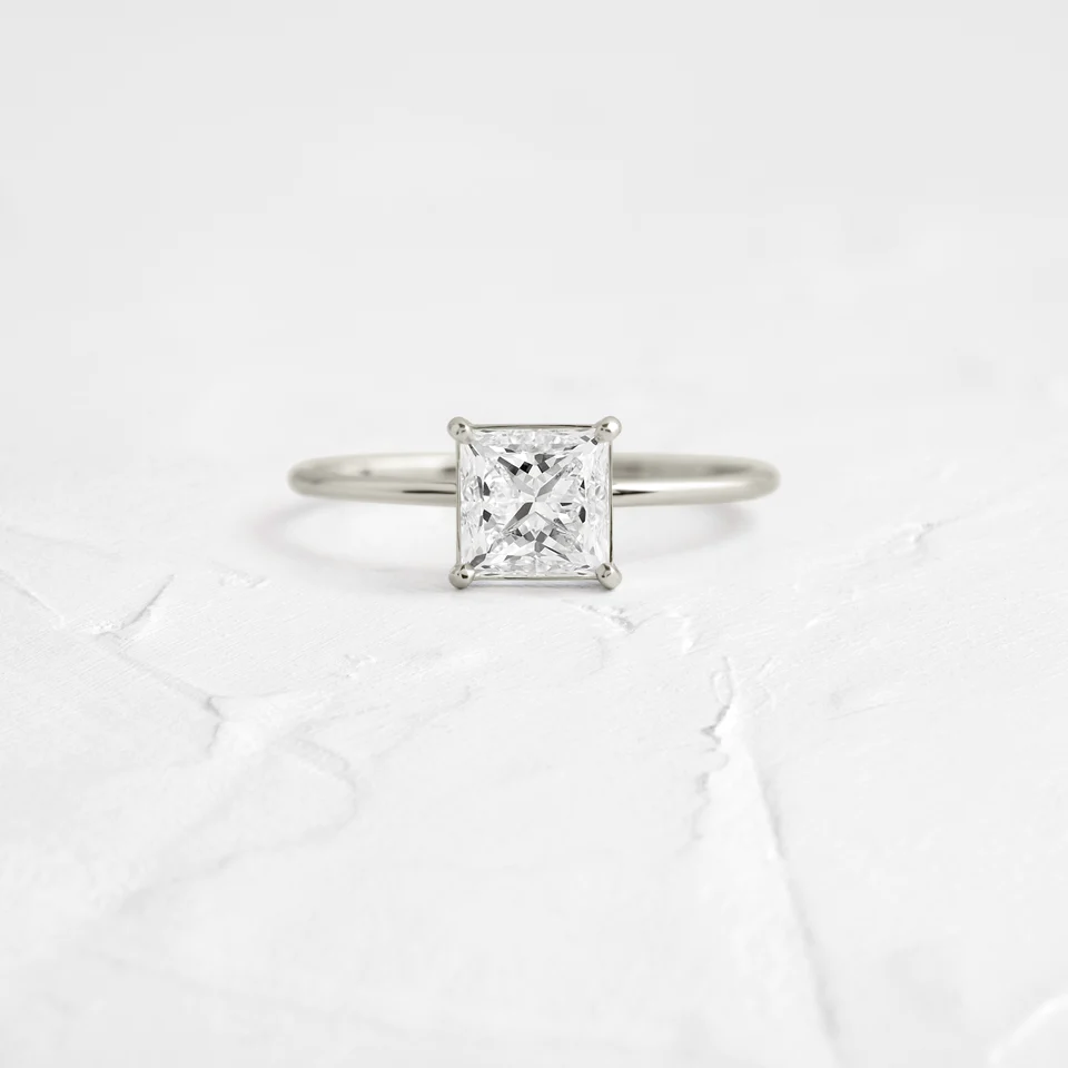 Featuring a bold 1.5ct princess-cut moissanite, the Whisper Ring blends clean lines with radiant sparkle for a modern yet timeless statement.