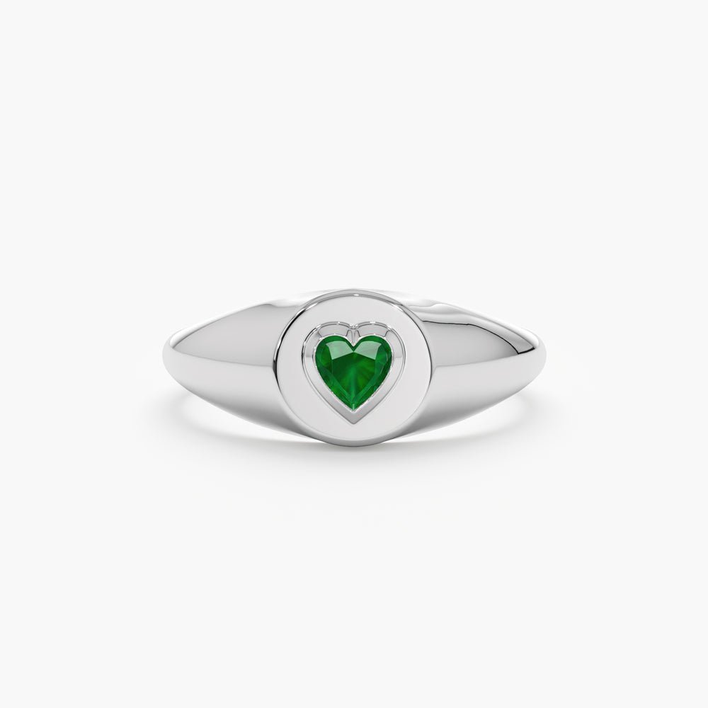 14K Solid Gold Emerald Heart Signet Ring