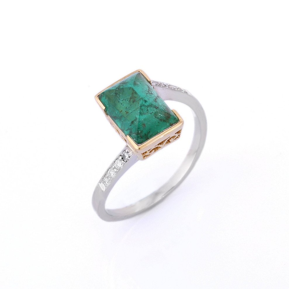 14K Solid Gold Emerald and Natural Diamond Bold Engagement Ring