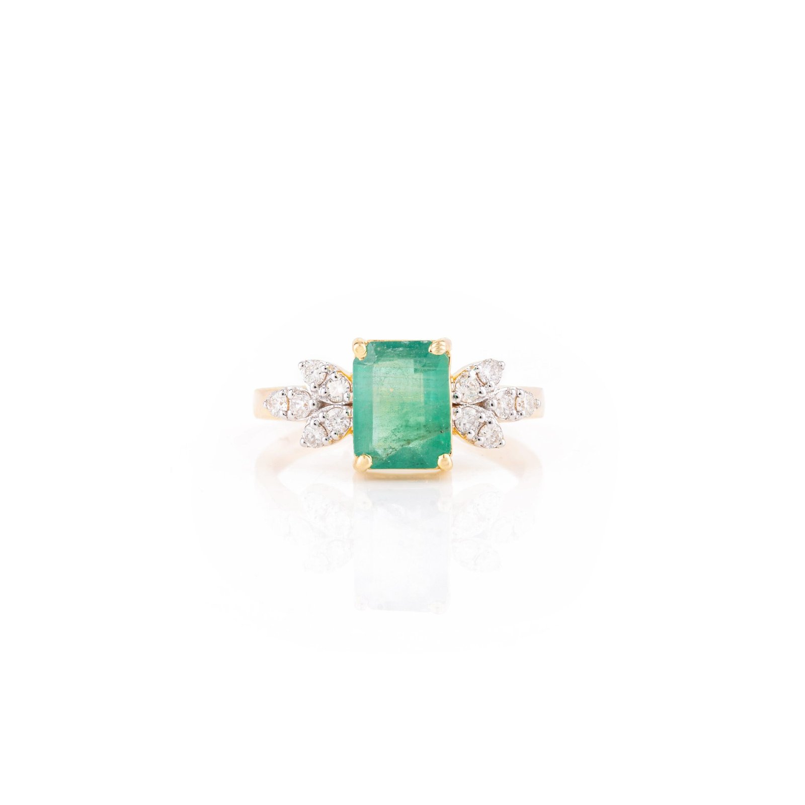 14K Solid Gold Emerald Flower Shape Ring