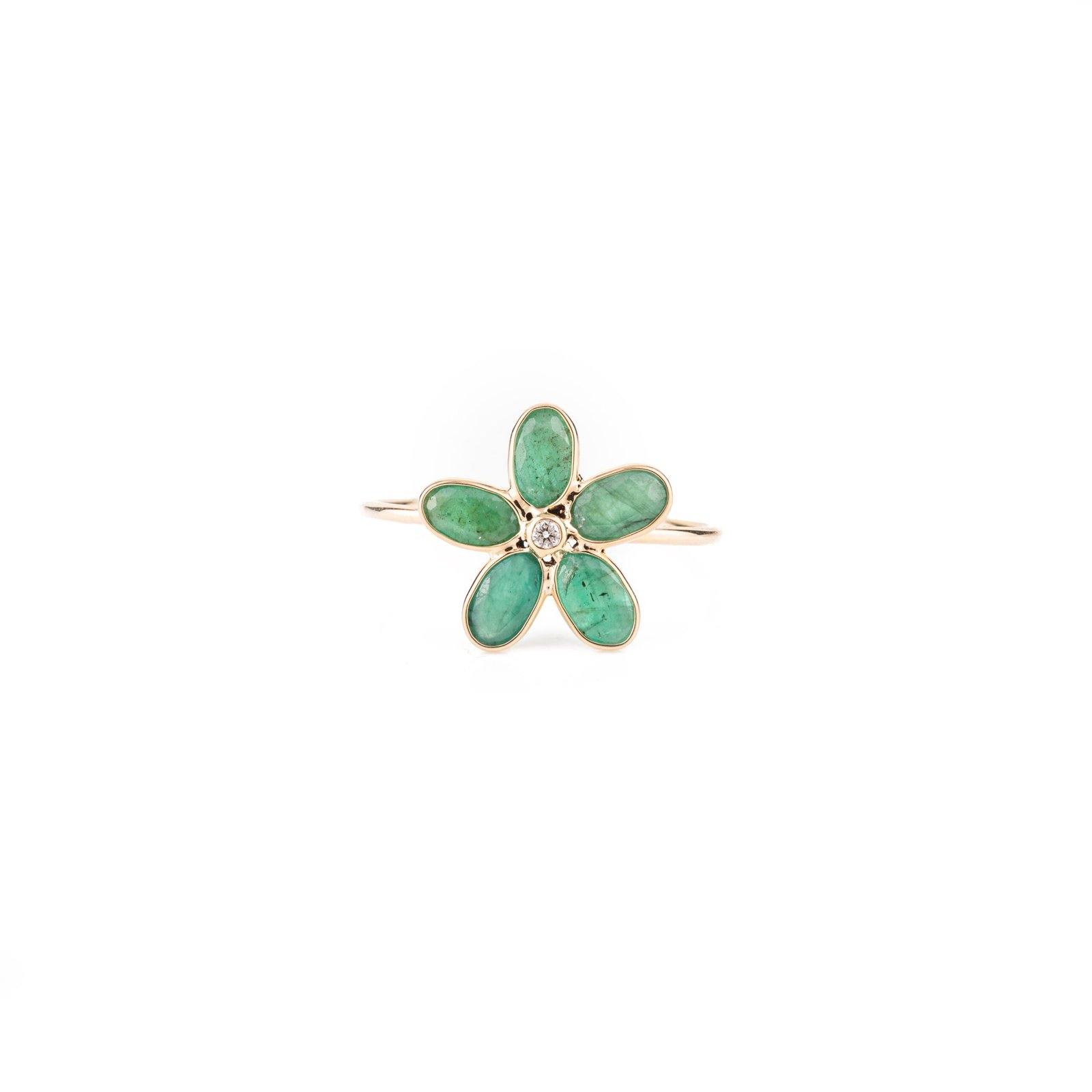 14K Solid Gold Emerald Flower Ring