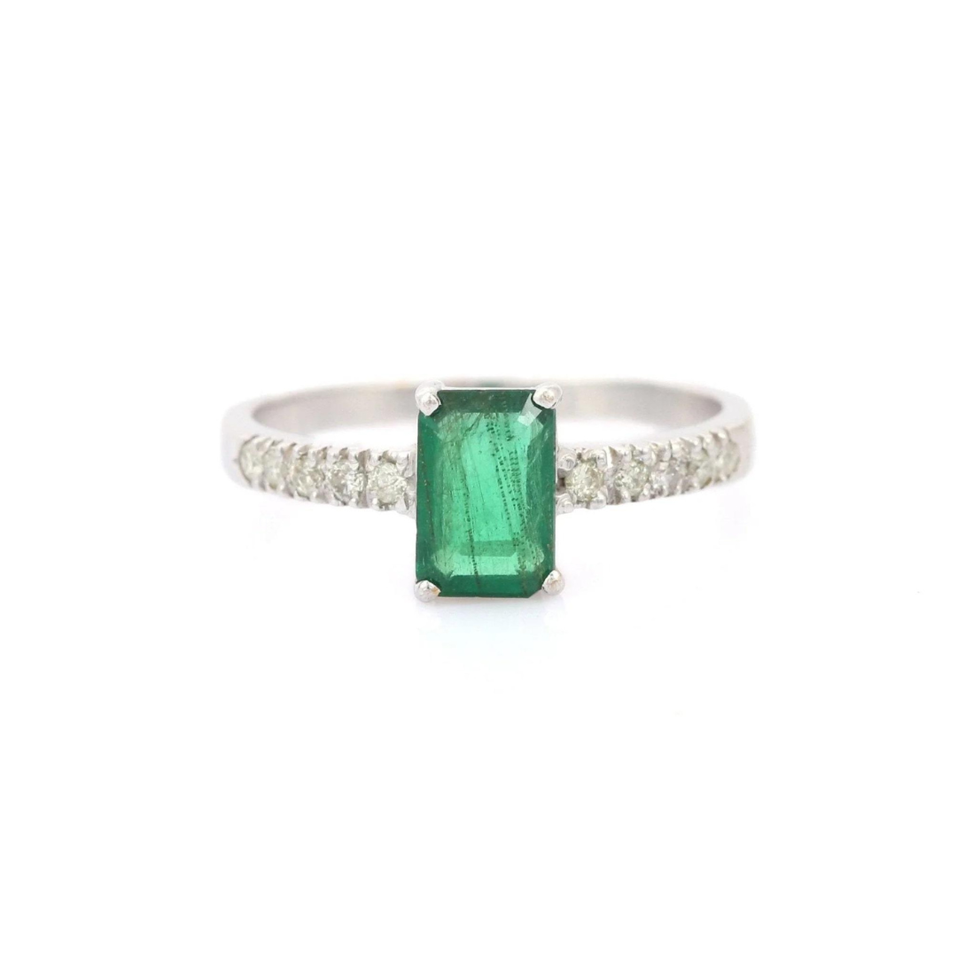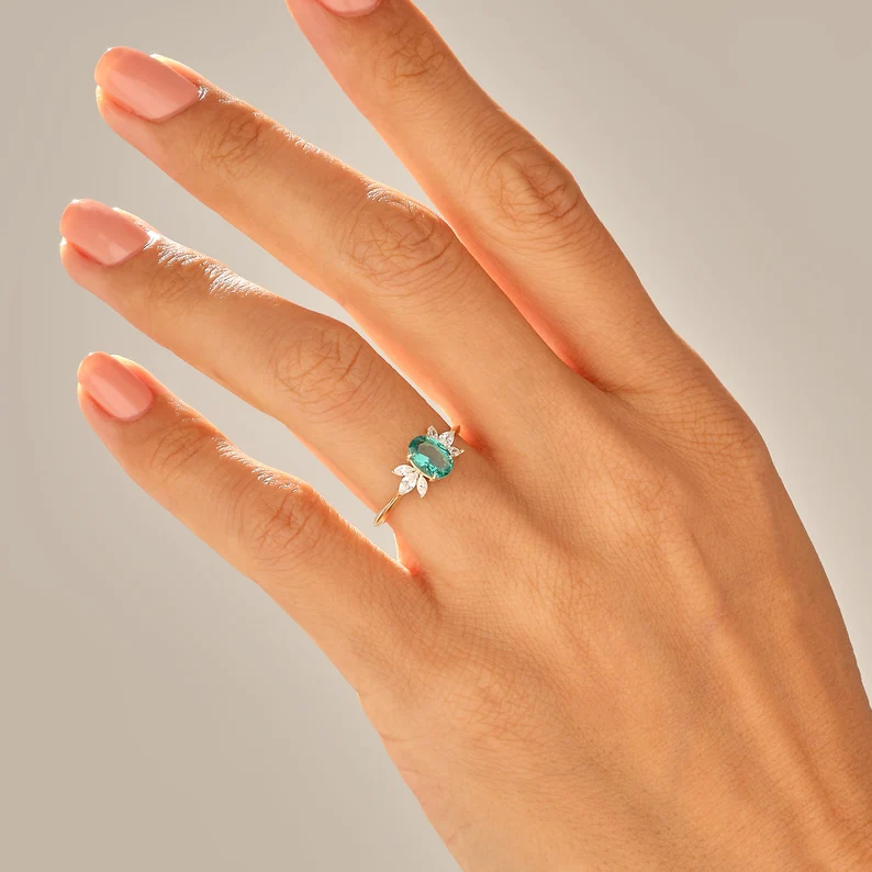 14K Solid Gold Emerald Diamond Engagement Ring