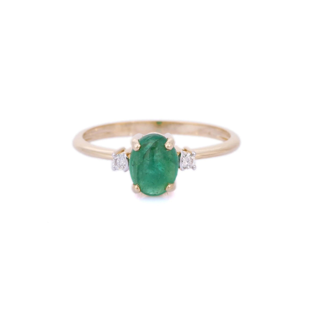 14K Solid Gold Emerald Precious Gold Ring