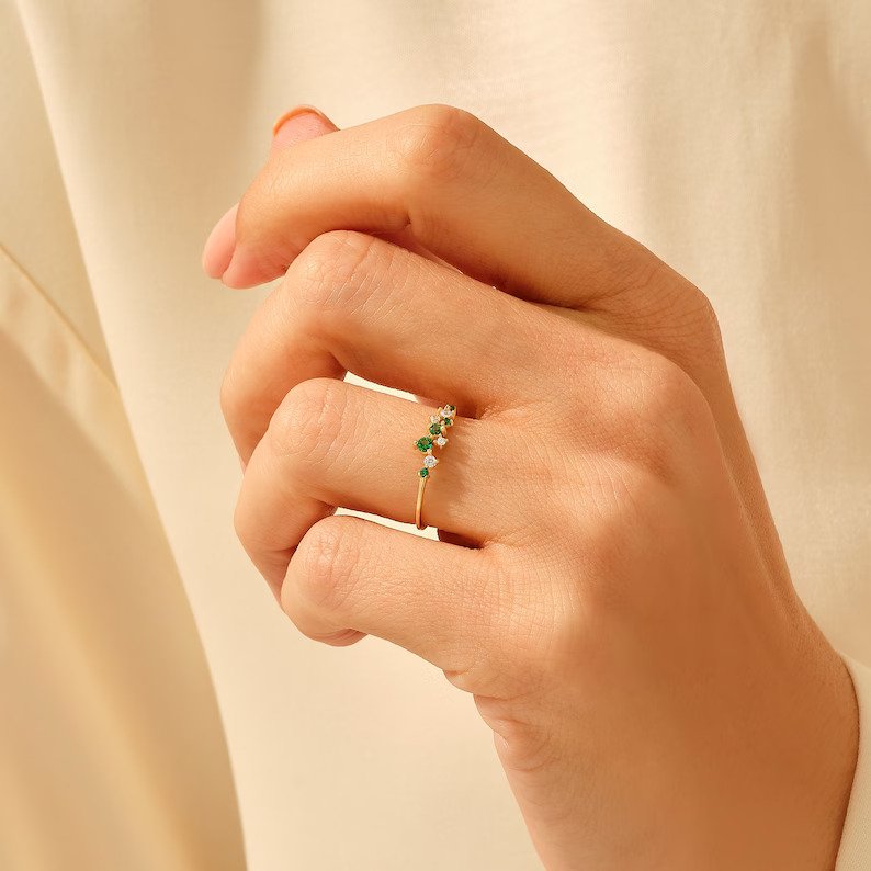 14K Solid Gold Emerald Stacking Ring