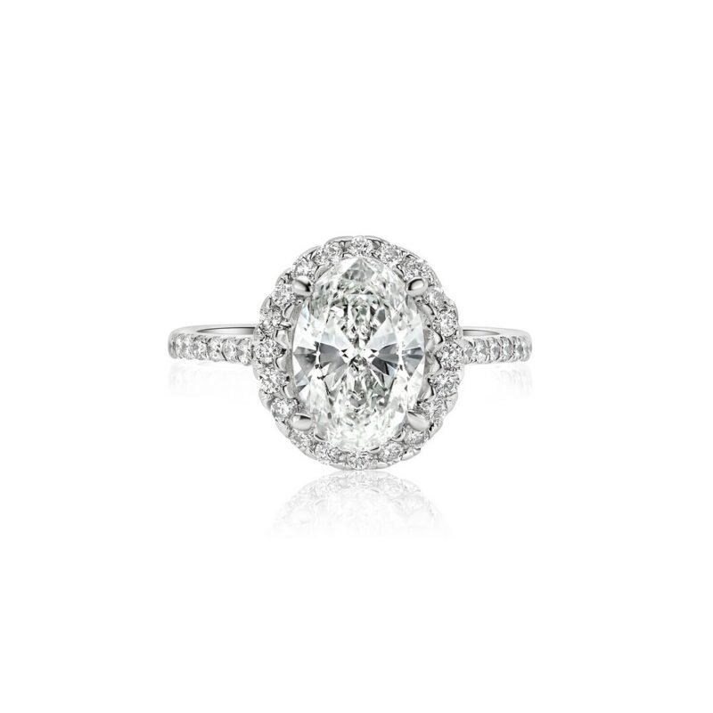 18k White Gold IGI Certified Lab-Created Diamond Oval Shape Halo Ring (2 CTW F-G