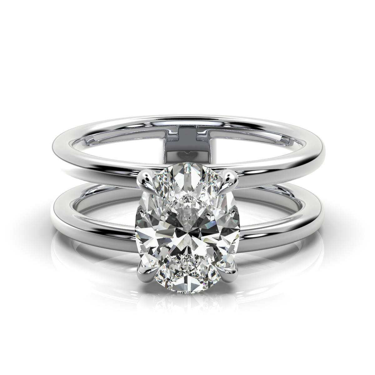 A modern 2ct lab-grown diamond engagement ring with a bold two-band design in 14K solid gold, enhanced with rhodium plating for a radiant finish. IGI & BIS Certified.