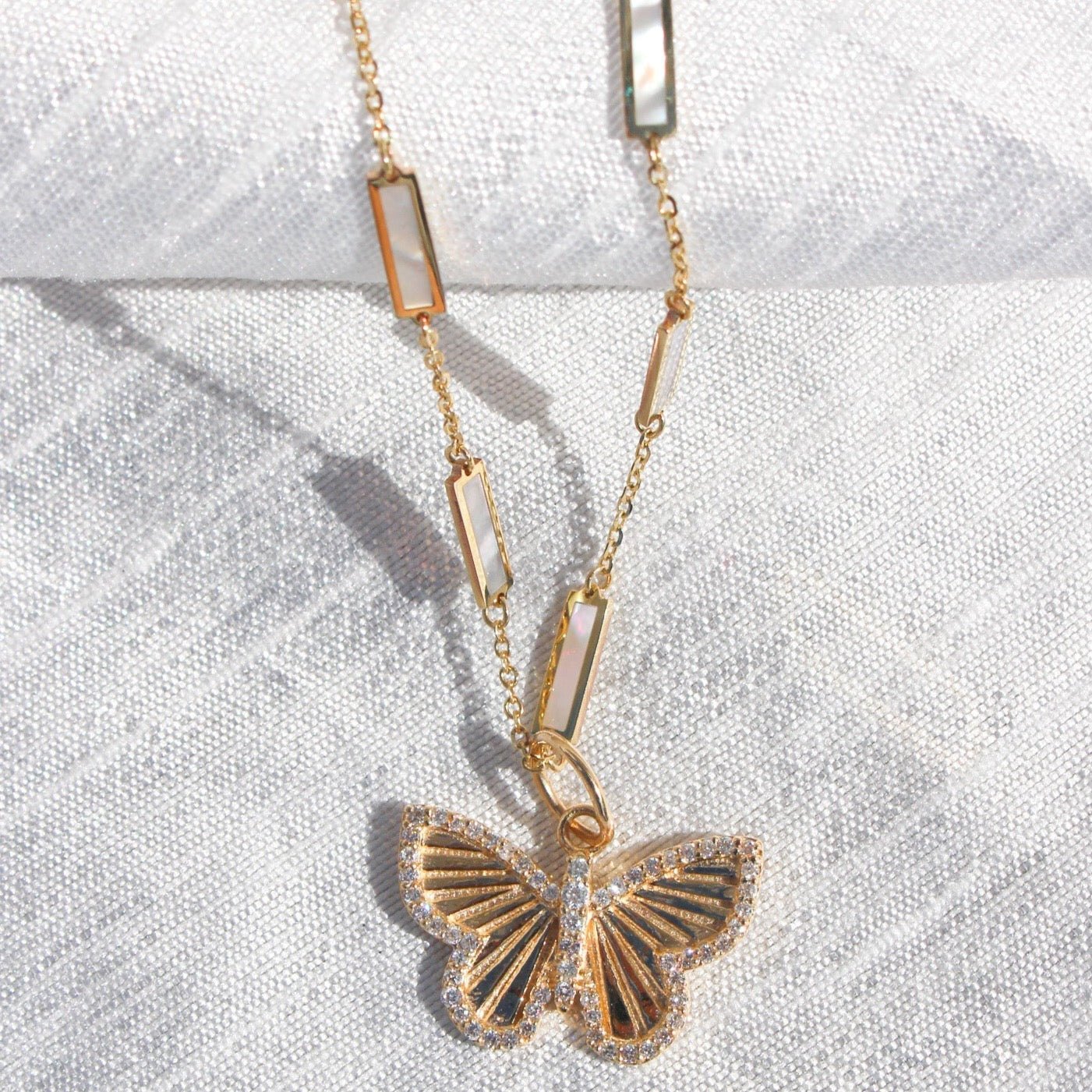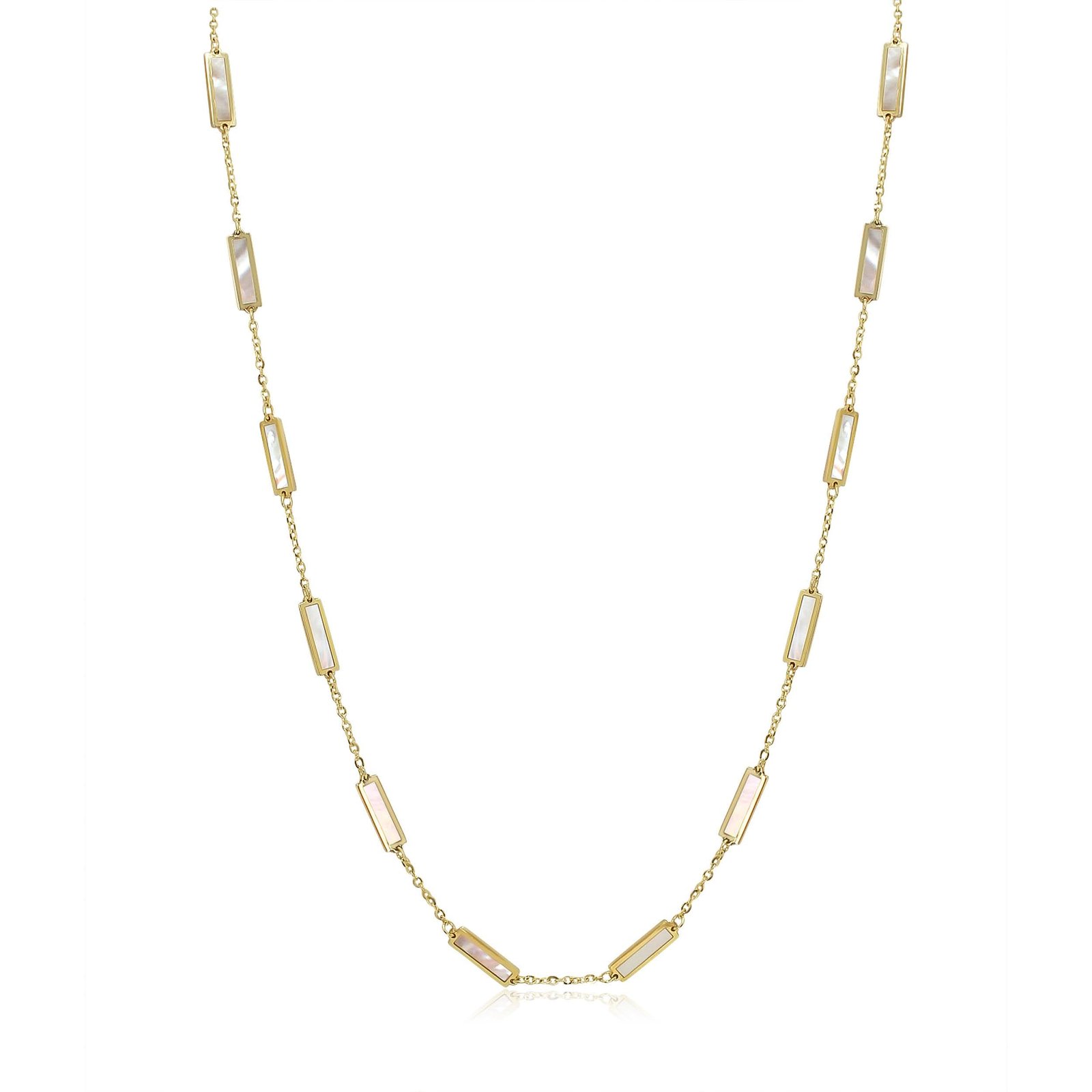 14K Solid Gold Multi Mother of Pearl Rectangle Necklace