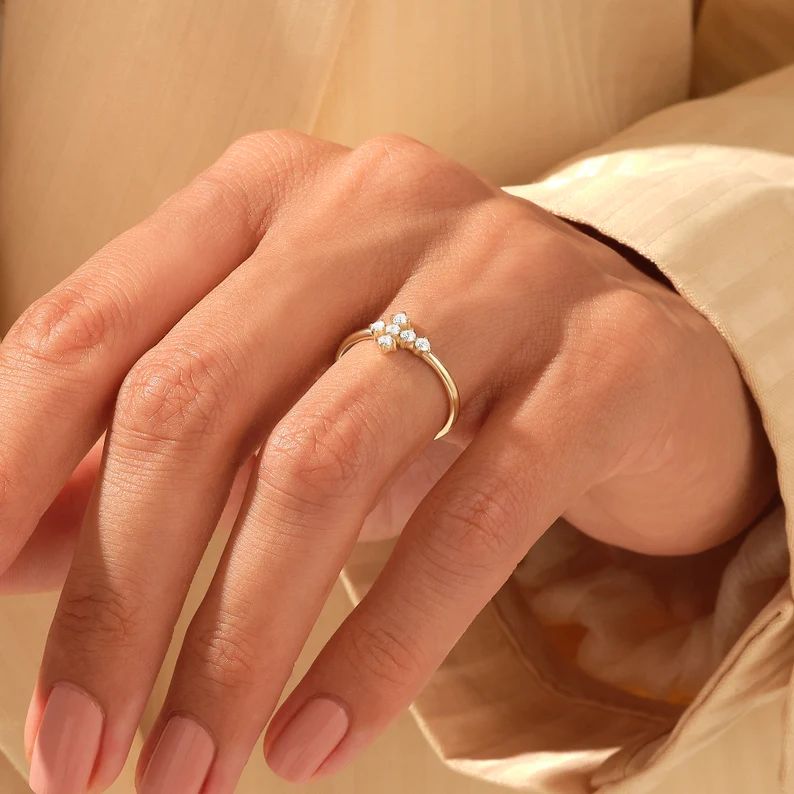 Natural Diamond Tiara Chevron Ring |14k Solid Gold Stackable Wedding Ring |V Shaped Ring