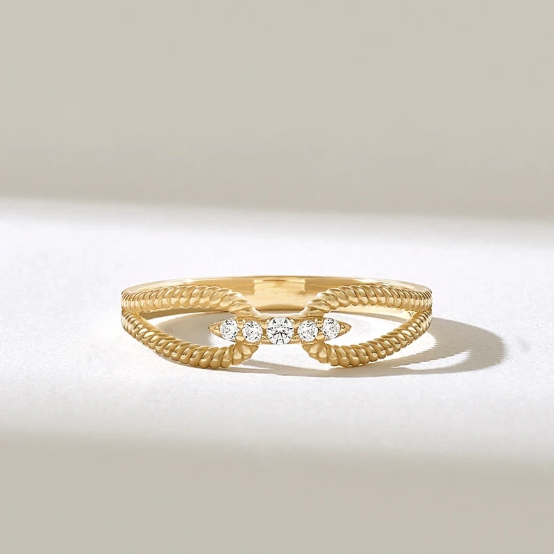 Pave Knife Edge Crown Ring | Unique Wavy Ring Enhancer Women| Cute Matching Ring