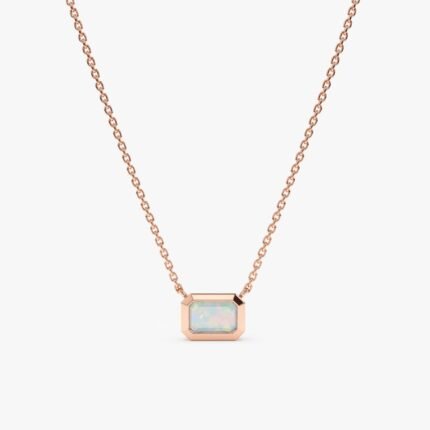 Adorn yourself with our captivating Opal Necklace, featuring an emerald-cut opal gemstone set in a solid 14k gold bezel. Perfect for layering or as a standalone piece.