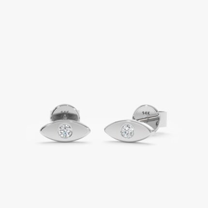 Ward off negativity with our Solid Gold Natural Diamond Eye Studs. Featuring a single diamond in the center of an evil eye symbol.