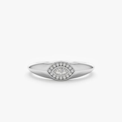 14K Gold Evil Eye Signet Ring featuring 0.15ct natural diamonds. A bold, protective symbol crafted with fine detail.