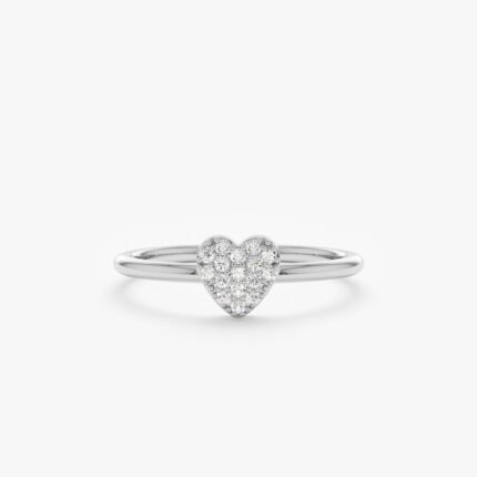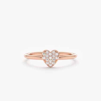 Pave Diamond Heart Ring in 14K Solid Gold with 0.07 ctw natural diamonds. A romantic, stackable piece crafted in white, yellow, or rose gold.