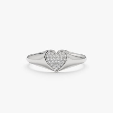 14K Solid Gold Pave Natural Diamond Heart Signet Ring