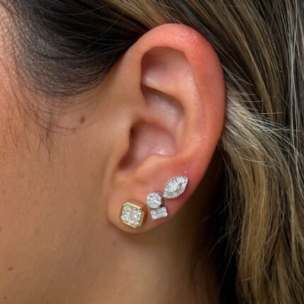 18k Gold Moissanite Diamond Square Octagon Stud Earring