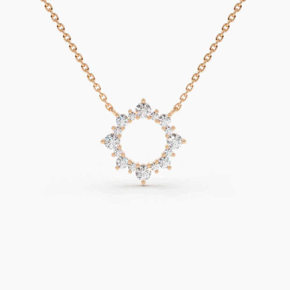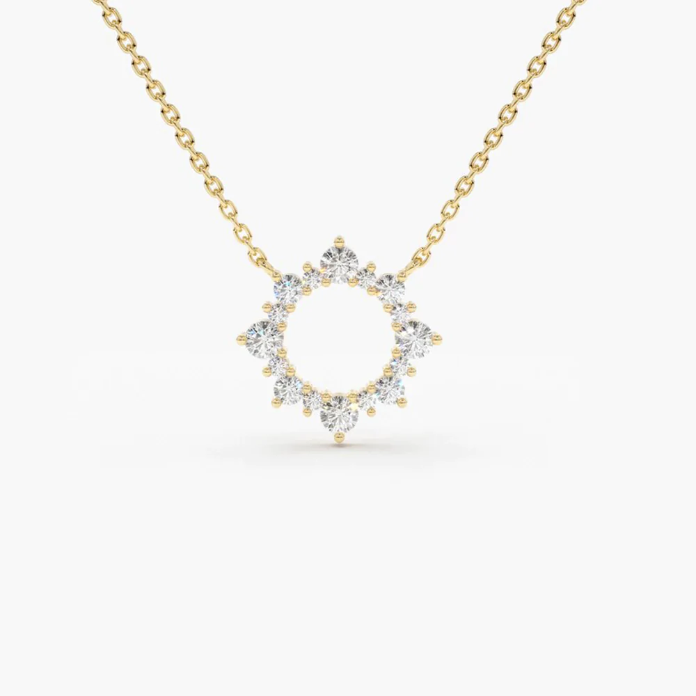用美麗的 18k 金天然鑽石太陽圓項鍊。