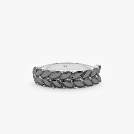 14K 純金黑色天然鑽石半永恆戒指