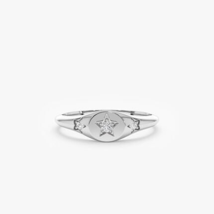 14K 純金天然鑽石星形印章戒指