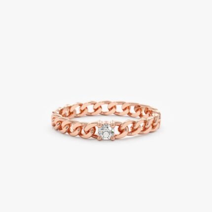 14K 純金單顆天然鑽石古巴鏈戒指