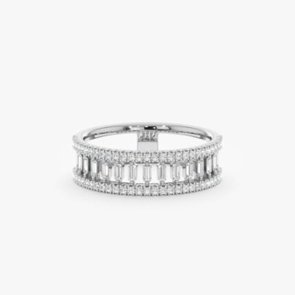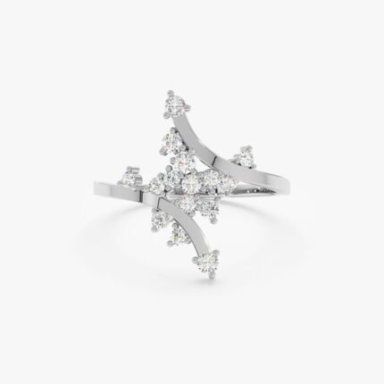 14K 純金不對稱鑲嵌天然鑽石群鑲戒指