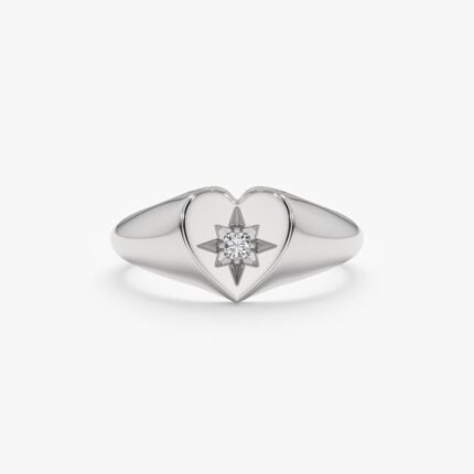 14K 純金天然鑽石星爆心型印章戒指