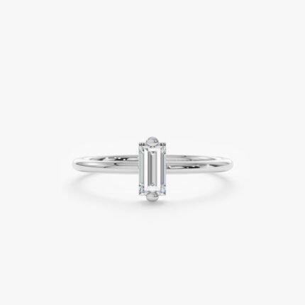 14K 純金單顆長方形天然鑽石戒指