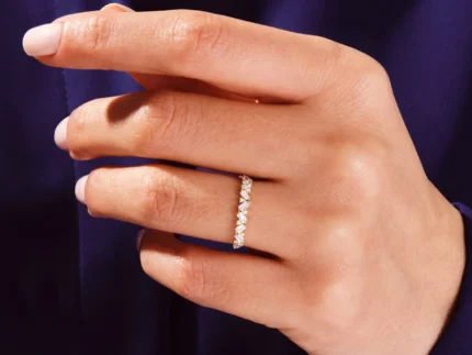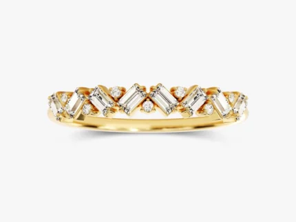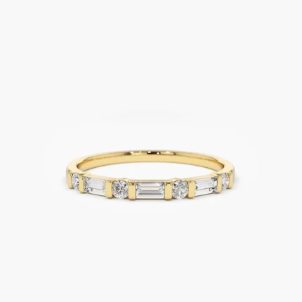 14K純金週年紀念戒指,鑲嵌長方形鑽石和圓形天然鑽石交錯排列。 GH色澤,VS-SI淨度。 BIS認證,GIA認證。