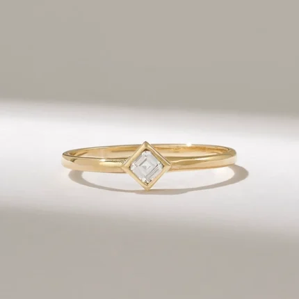 公主方單石戒指 | 18k 微型訂婚戒指 | 公主方切割天然鑽石戒指