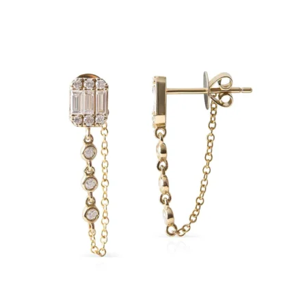 購買此產品(14K金)Angelica 鑽石鏈耳環 採用 18k純金 並具有令人驚嘆的 鑽石. 有售 白色、玫瑰色, 或者 黃金,這對耳環 BIS 標記 追求真實性。它們外觀精緻優雅,適合任何場合。 運送時間10-12個工作天, 和 客戶支援 可透過 即時聊天視訊通話.