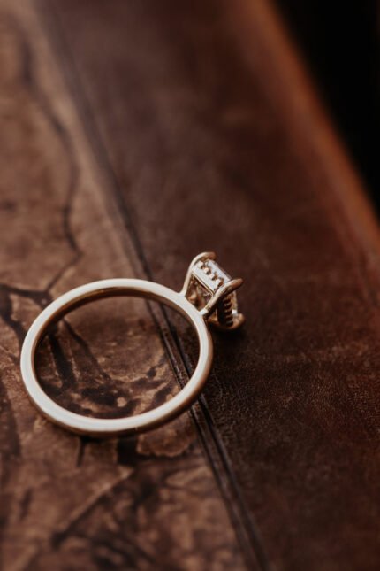 祖母綠切割實驗室培育鑽石串珠頭單石戒指